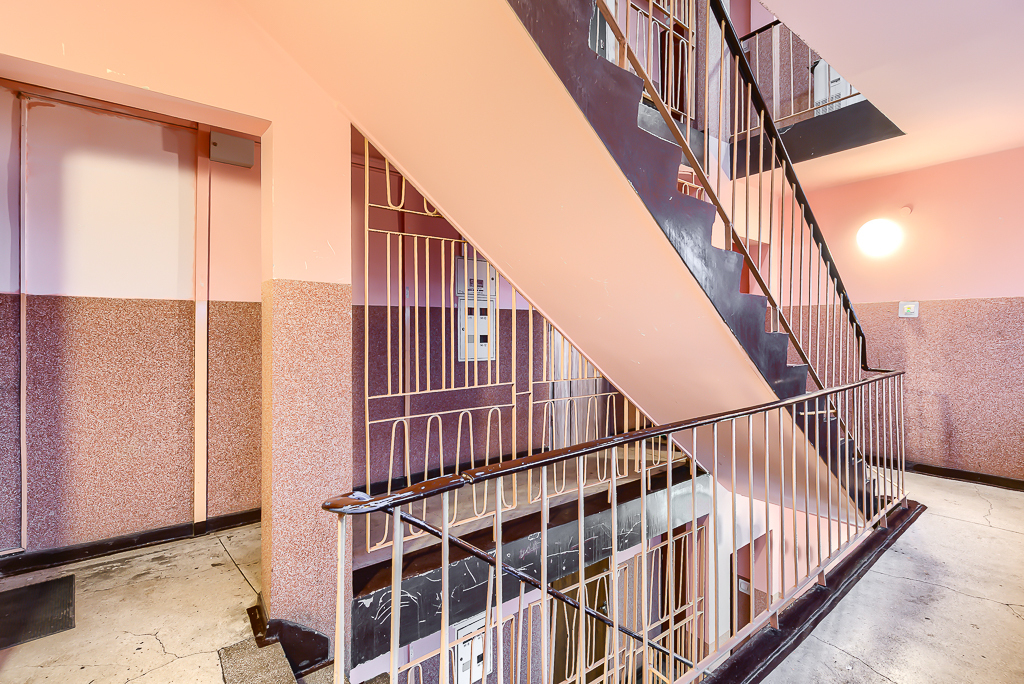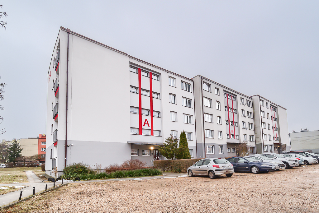 Lokal znajduje się na 3. piętrze w niskim, 4-piętrowym bloku.