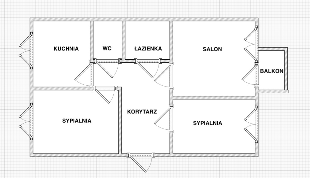 - salonu z wyjściem na balkon