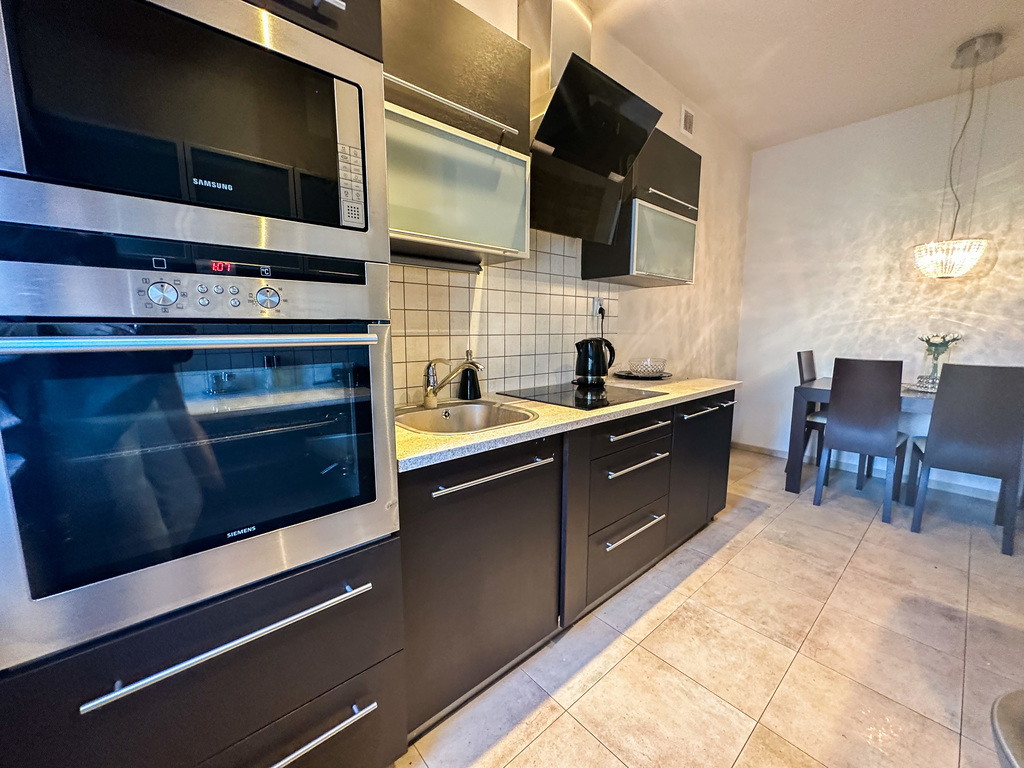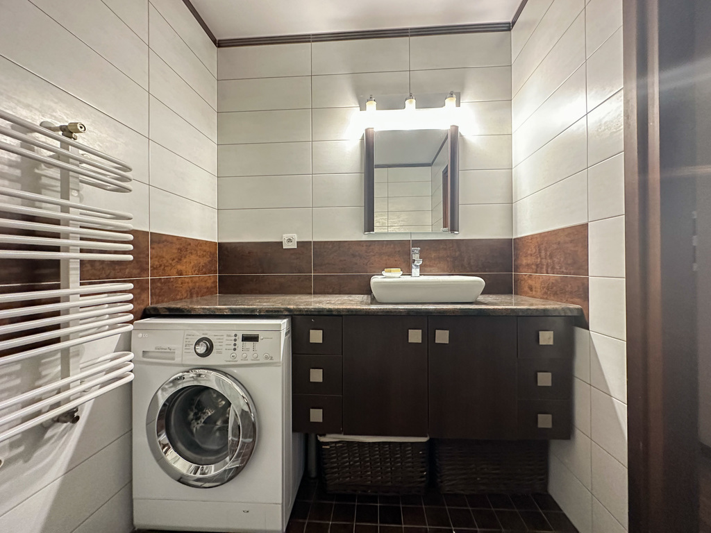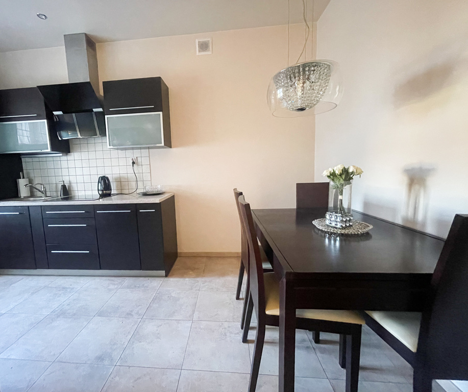 Mieszkanie jest urządzone w nowoczesnym stylu, w stanie idealnym.
