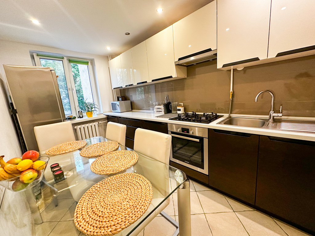 - kuchnia z wysokiej jakości meblami w zabudowie,