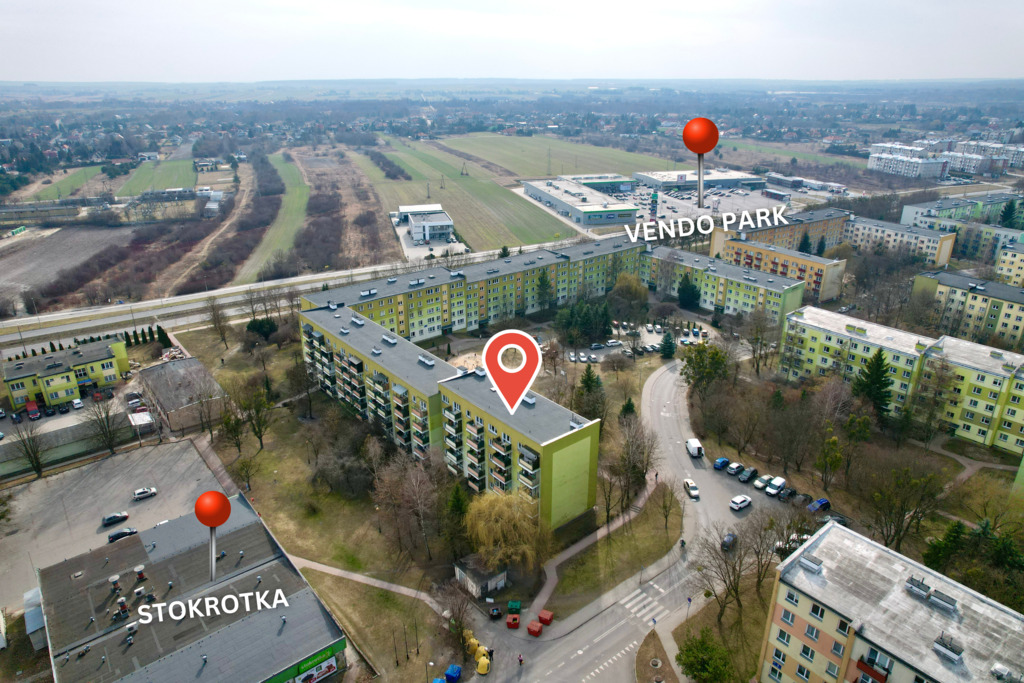 Mieszkanie z doskonałym dostępem do szkół, sklepów (Vendo Park) restauracji, szkół, przychodni, kościoła, placu zabaw oraz innych usług.