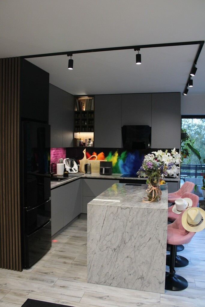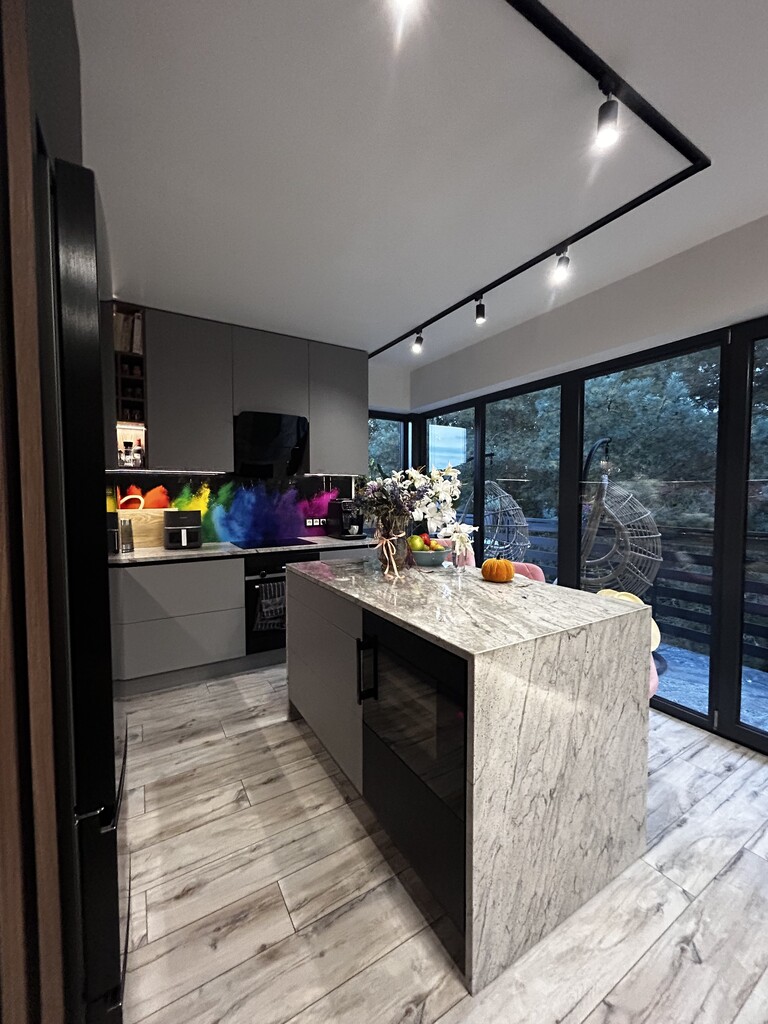-granitowe blaty i wyspa kuchenna z kamienia Stream White,