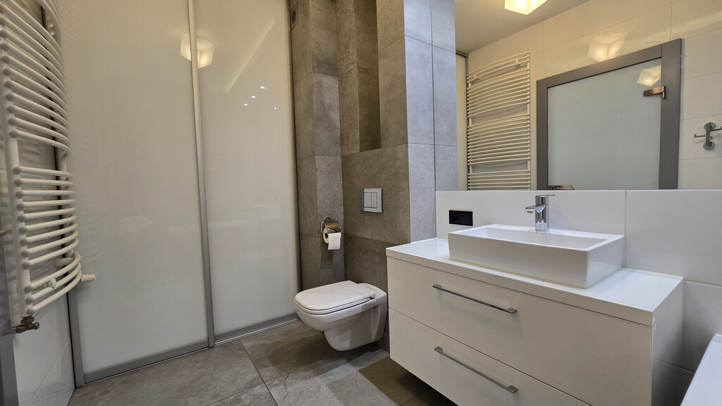 Mieszkanie wykończone materiałami najwyższej jakości z dbałością o najmniejsze detale.