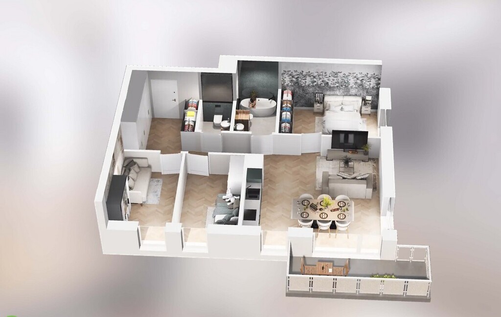 Przedstawione wizualizacje i grafiki mają charakter wyłącznie poglądowy i stanowią wyłącznie materiał pomocniczy, ułatwiający zorientowanie się w ogólnym wyglądzie oferowanej nieruchomości.