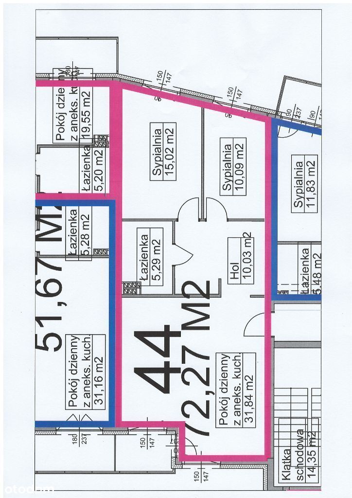 Dostępne jest również mieszkanie o takim samym układzie na 3 piętrze o metrażu 72.43m²