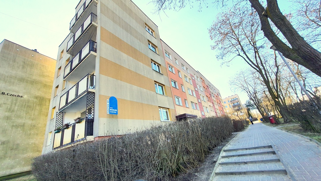 Na sprzedaż mieszkanie M2 o powierzchni 34,1m² zlokalizowane w zielonej dzielnicy Północ przy ulicy Bronisława Czecha, usytuowane na wysokim parterze w czteropiętrowym bloku.