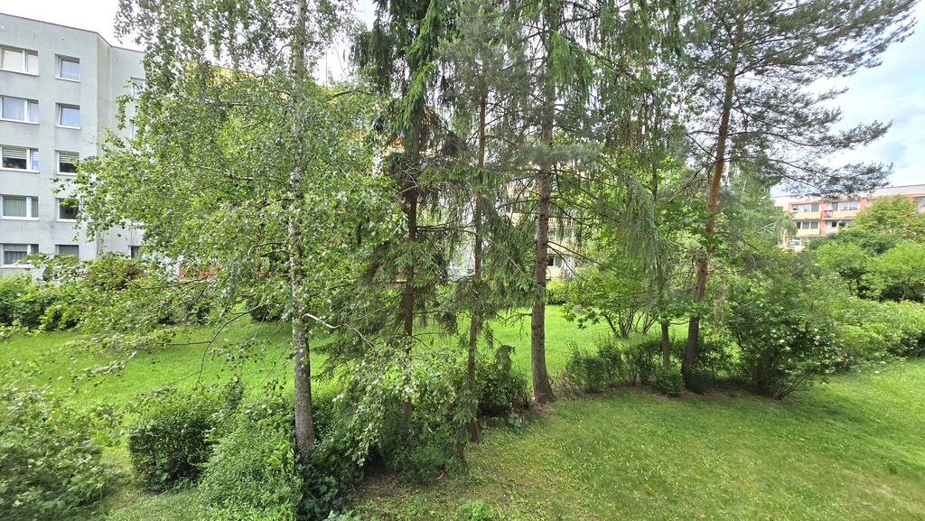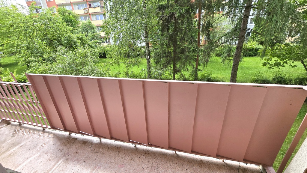 zadbanym bloku w otoczeniu zieleni z dala od ruchliwej ulicy.