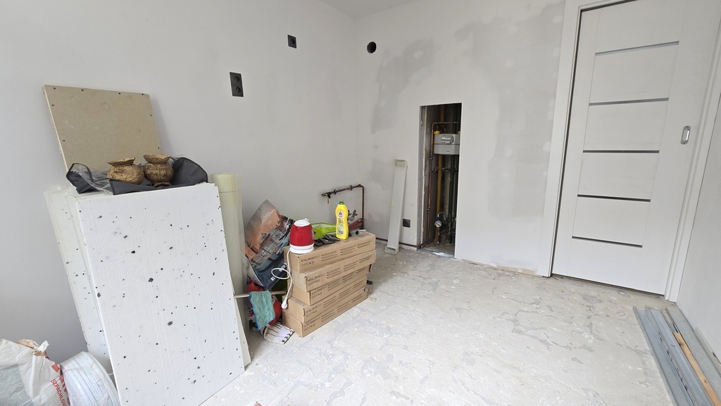 W przedpokoju, kuchni, sypialni zostały położone nowe gładzie gipsowe.