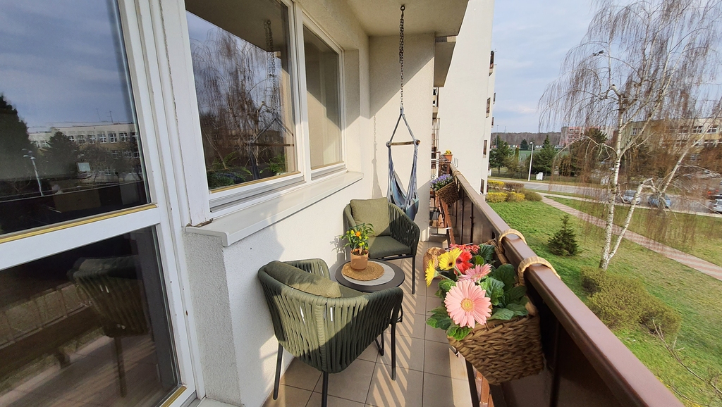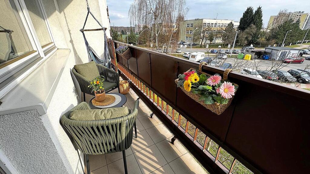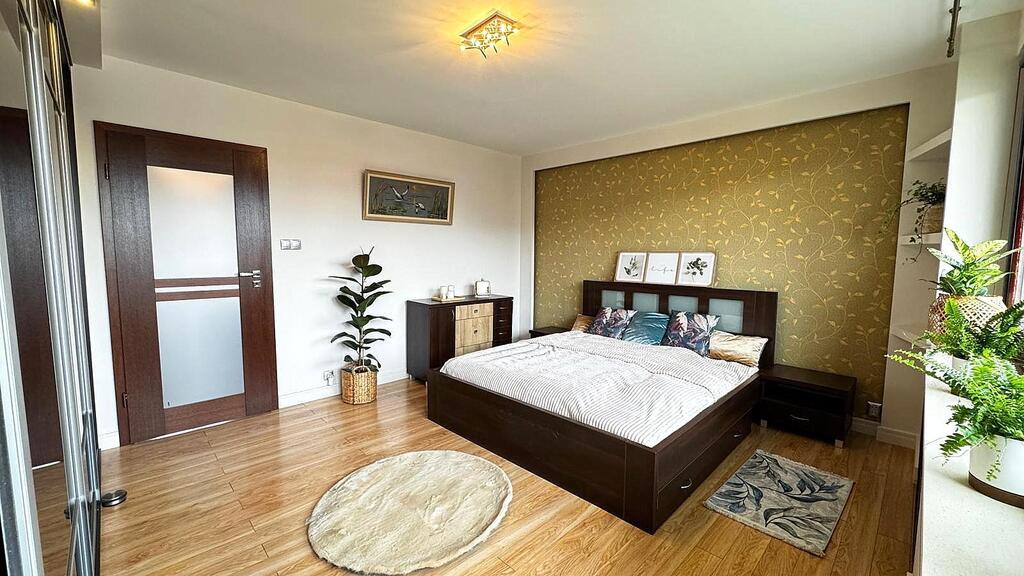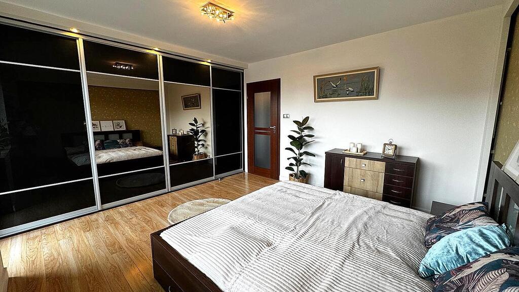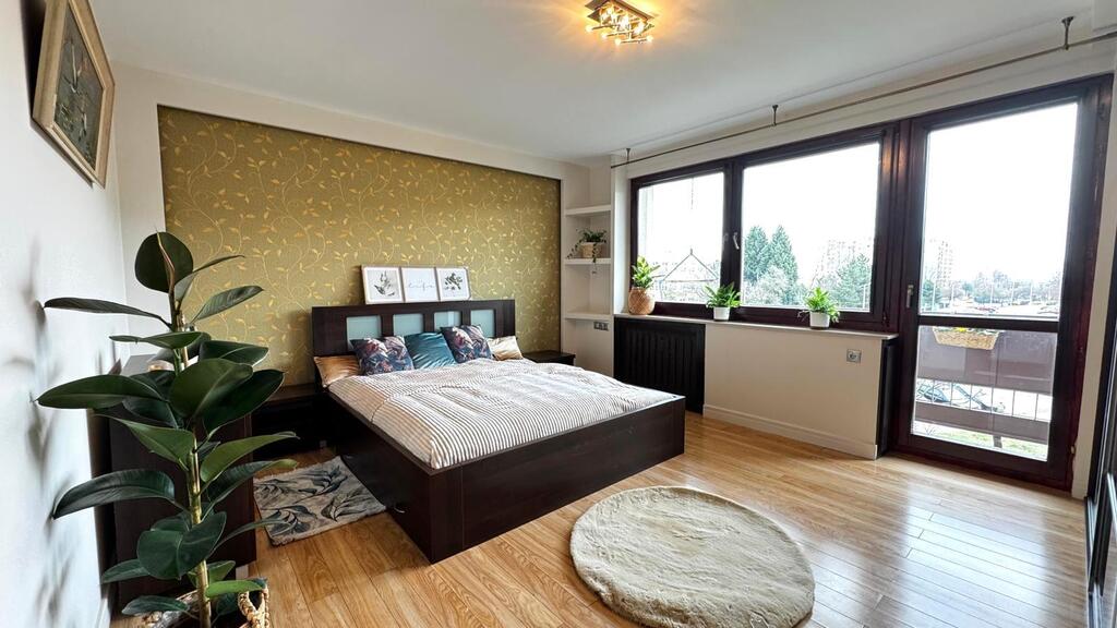 - Sypialnia z pojemną szafą oraz wyjściem na balkon