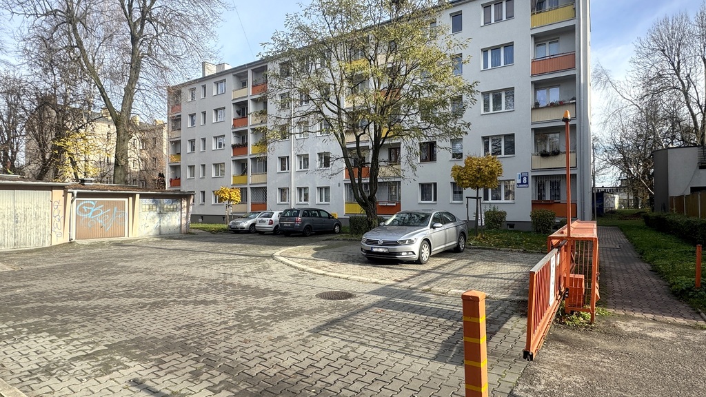 BUDYNEK: Czteropiętrowy blok z dala od ruchliwej ulicy. Czyste i zadbane klatki schodowe zabezpieczone domofonem. Parking za szlabanem tylko dla mieszkańców bloku.