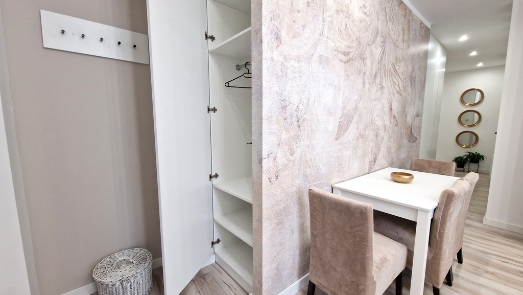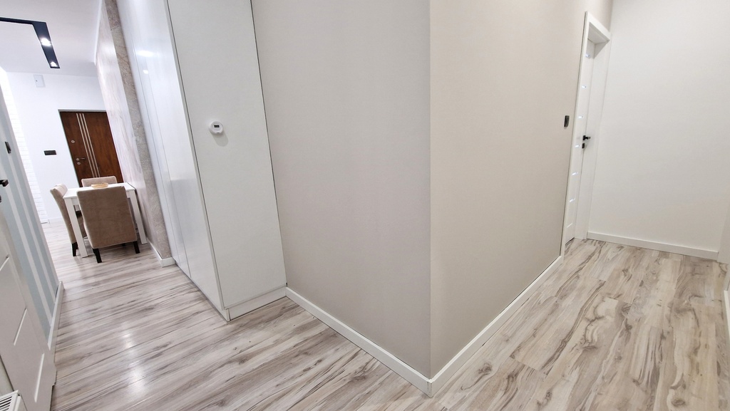 - Przedpokój z pojemnymi szafami w zabudowie