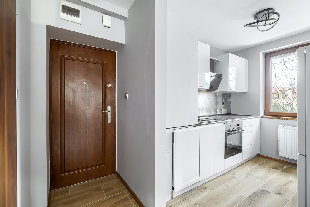 Mieszkanie w stanie bardzo dobrym, nie wymaga nakładu finansowego. W nieruchomości zostały wykonane gładzie na ścianach, podłogi w kaflach i panelach, wszystkie instalacje zostały wymienione (włącznie z pionami wodno-kanalizacyjnymi). Kuchnia wyposażona w sprzęt AGD oraz meble w zabudowie, Łazienka wyposażona w prysznic z odpływem liniowym, sypialnia posiada przestronną szafę w zabudowie.  Ekspozycja mieszkania na zachód (sypialnia oraz salon) jest korzystną orientacją pomieszczeń. Dodatkowo w mieszkaniu został zamontowany alarm. Budynek został poddany termomodernizacji.