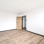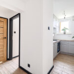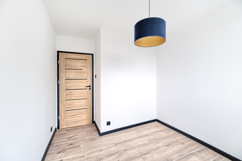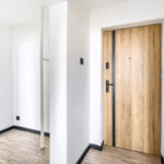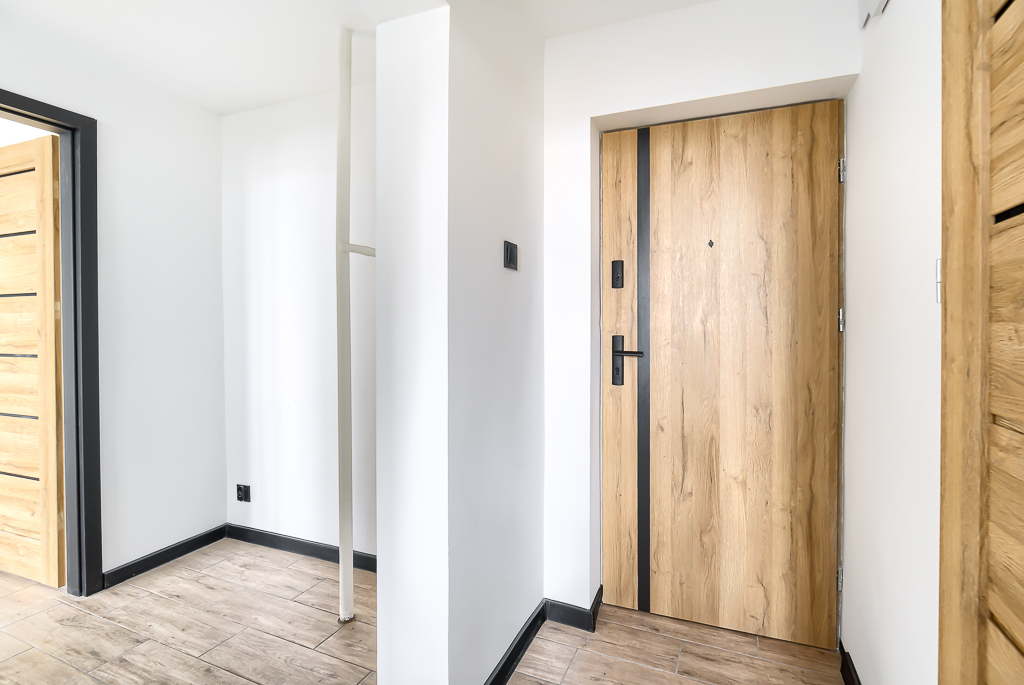 W przedpokoju oraz kuchni na podłodze położono płytki gresowe, w pokojach panele, oraz w całym mieszkaniu wymieniono wszystkie drzwi wraz z oscieżnicami.