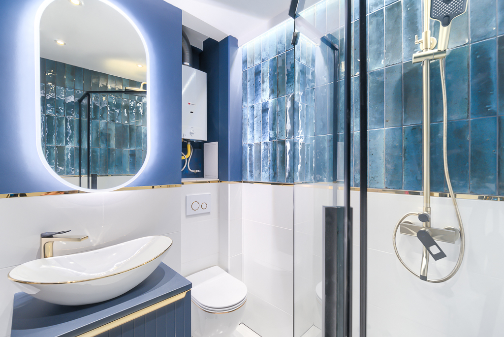 W łazience zamontowano m.in. prysznic z deszczownicą, toaleta z zestawem podtynkowym, nowy piec gazowy.