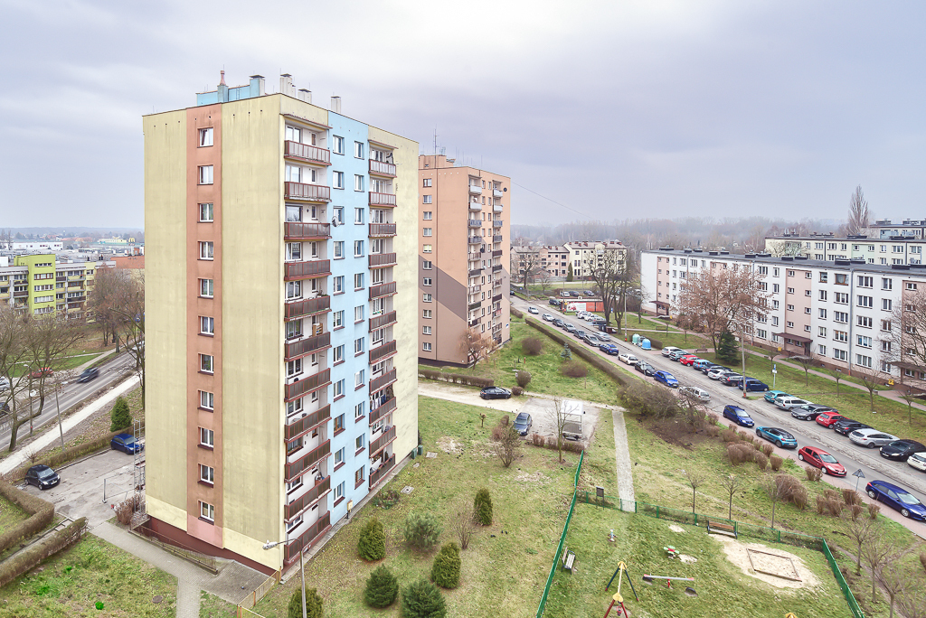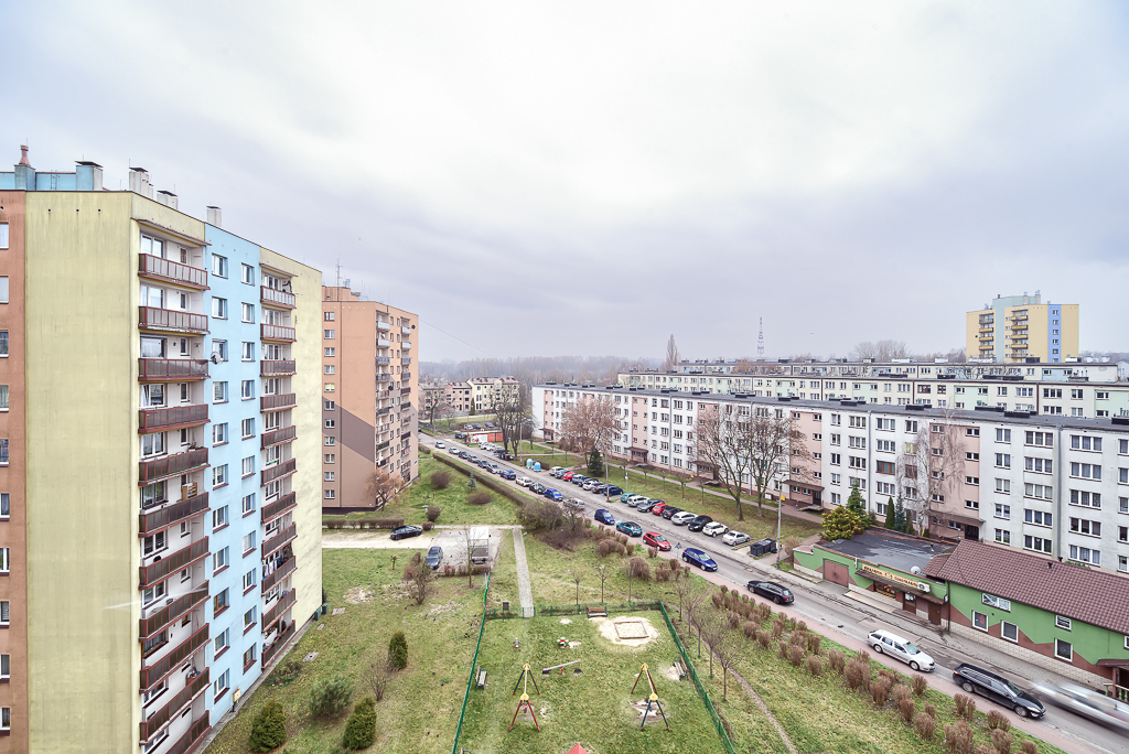 Słoneczne mieszkanie o powierzchni 36,6 m2 usytuowane na 8 piętrze w dzisięcio piętrowym bloku wyposażonym w dwie windy.
