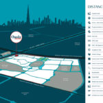 Zajmuje obszar 7,2 km² i znajduje się w strategicznej lokalizacji przy Emirates Road, zapewniając łatwy dostęp do głównych autostrad i punktów orientacyjnych miasta.