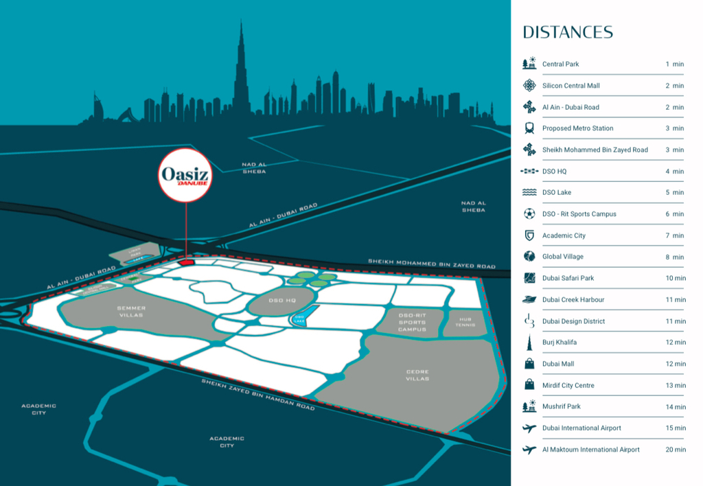 Inwestycja Oazis to ekskluzywny projekt mieszkaniowy realizowany przez Danube Properties, zlokalizowany w Dubai Silicon Oasis, w Dubaju