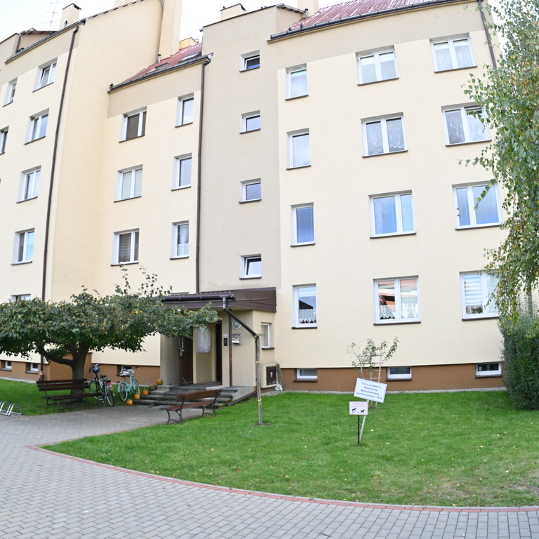 , oświetlone i zadbane  osiedle jest po rewitalizacji w 2020r. Chodniki do spacerów, miejsca parkingowe w tym wydzielone dla osób niepełnosprawnych, dużo zieleni i dostępne ławeczki są dużym udogodnieniem.   Dla młodzieży i dzieci są :monitorowany Orlik oraz plac zabaw z akcesoriami dla dzieci.