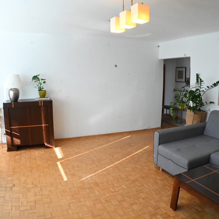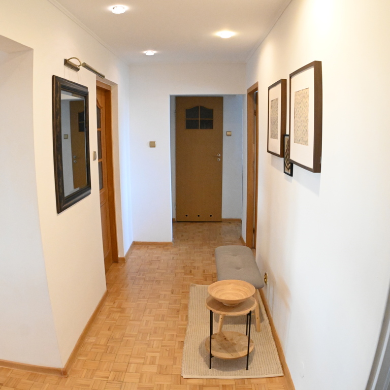 Mieszkanie jest rozkładowe i składa się z 4 pokoi w tym salonu z dużym balkonem (loggia), widnej kuchni, łazienki, ubikacji  i dużego przedpokoju .Do mieszkania przynależy także dość duża  piwnica .