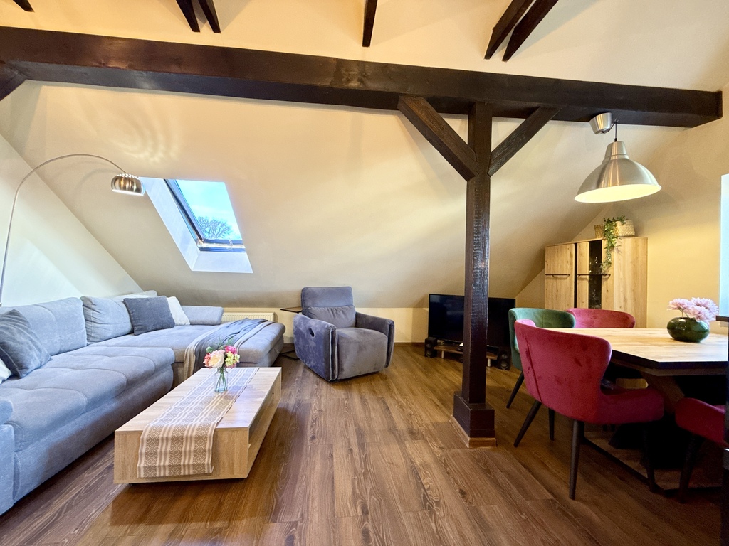 PÓŁNOC Nieruchomości Jelenia Góra ma przyjemność zaprosić Państwa do obejrzenia kapitalnego, dużego, dwupoziomowego mieszkania w Dziwiszowie.
