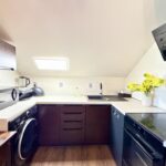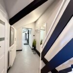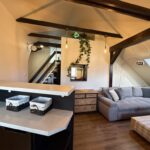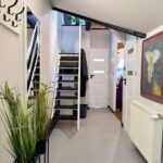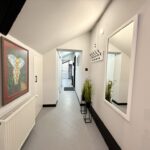 Mieszkanie znajduje się na 2 piętrze i zajmuje całą górę 1/3 budynku, po podłodze mamy 95 m2 a dodatkowo jeszcze dwie antresole odpowiednio 19,5 m2 oraz 22 m2 ( po podłodze), co daje nam łącznie do dyspozycji ponad 130 m2. Trzeba dodać iż w księdze wieczystej metraż jest dużo mniejszy ze względu na skosy. Metraż użytkowy mierzony na potrzeby KW to 57m2.