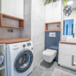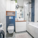 - Łazienka 🛁 – elegancka armatura, kabina prysznicowa, pralka, wysokiej jakości kafle.
