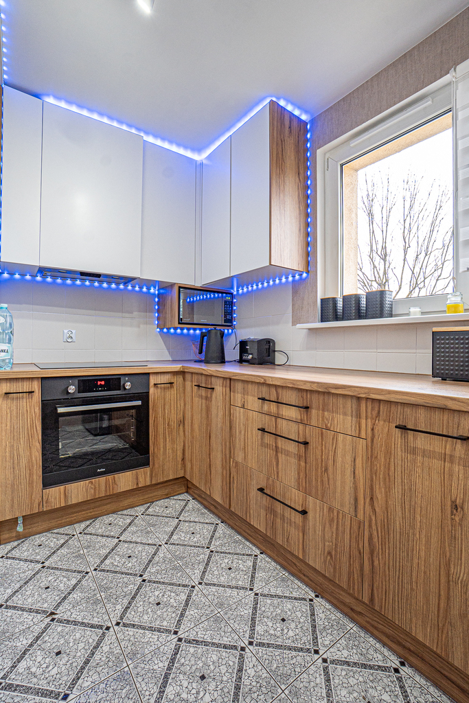 • oddzielna, widna kuchnia – po remoncie, wyposażona w zabudowę,