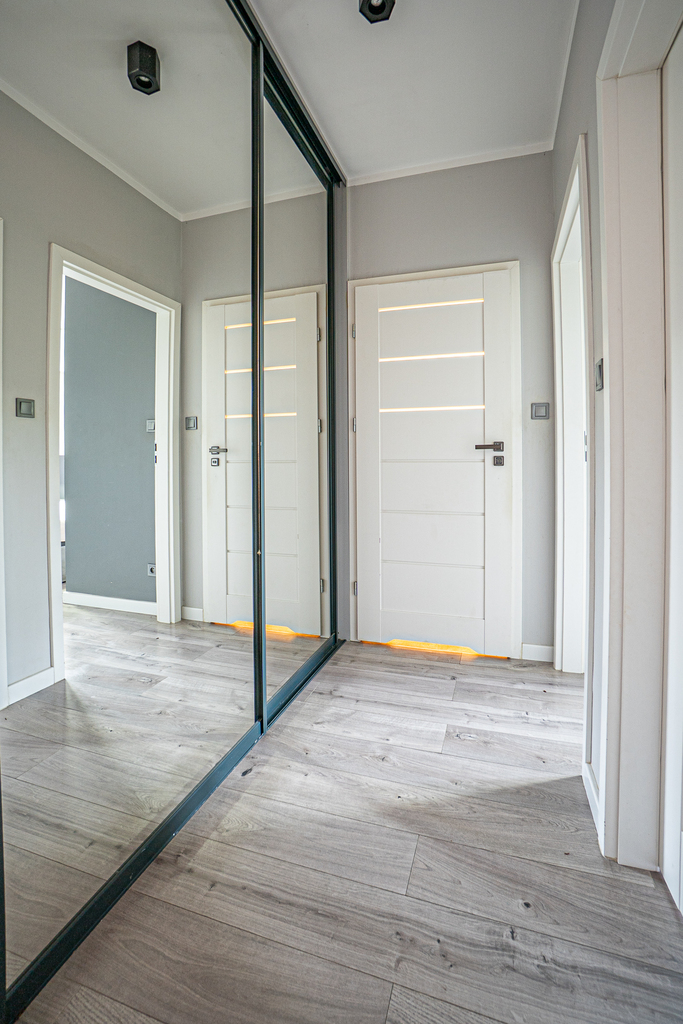 Przedpokój – zabudowane, pojemne szafy w wysokim połysku. Atuty lokalizacji