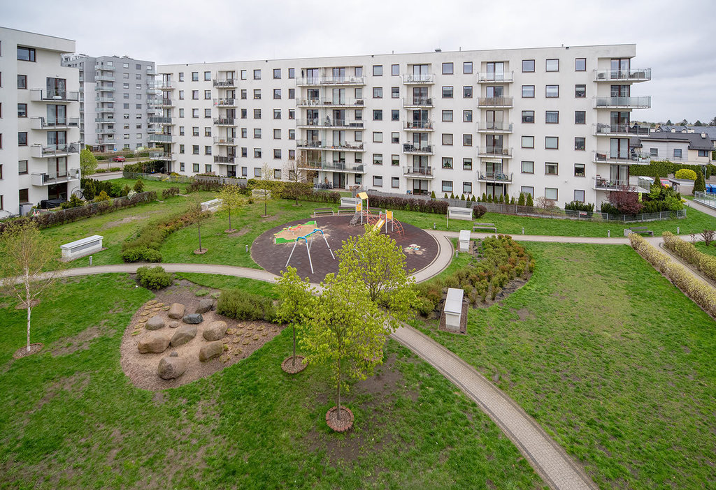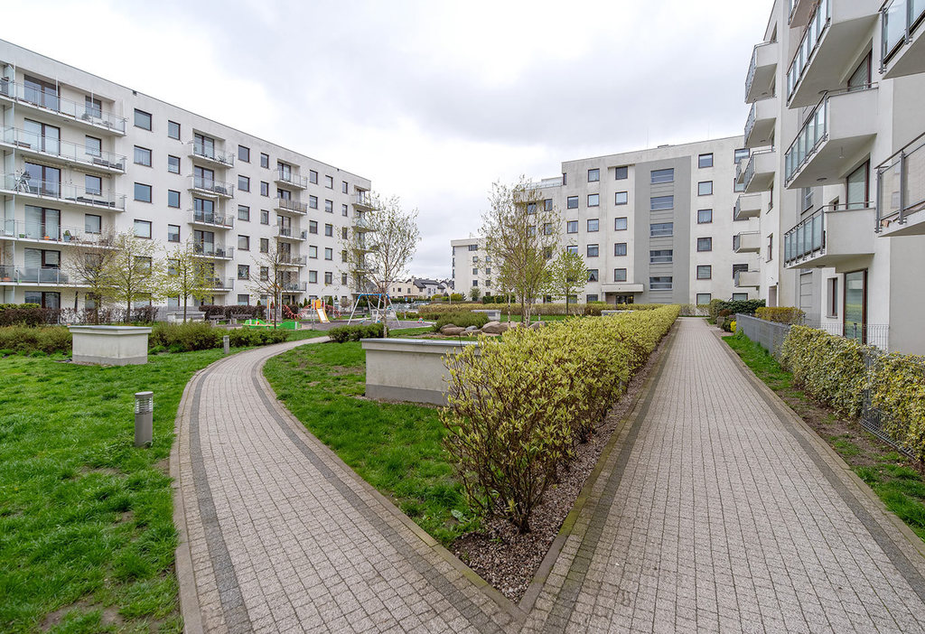 Mieszkanie znajduje w pięciokondygnacyjnym budynku wzniesionym w 2014 r. przez cenionego dewelopera ROBYG. Dostęp do hali garażowej bezpośrednio z klatki schodowej, w której zainstalowano cichobieżne windy. Na terenie osiedla znajduje się zadbana mała architektura wraz z placami zabaw. Wejście do budynku zabezpieczone domofonem. Osiedle monitorowane. Dodatkowo wyłącznie dla mieszkańców osiedla strefa fitness.