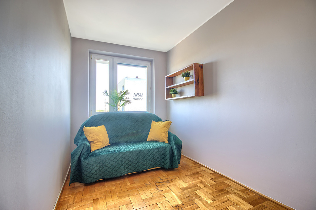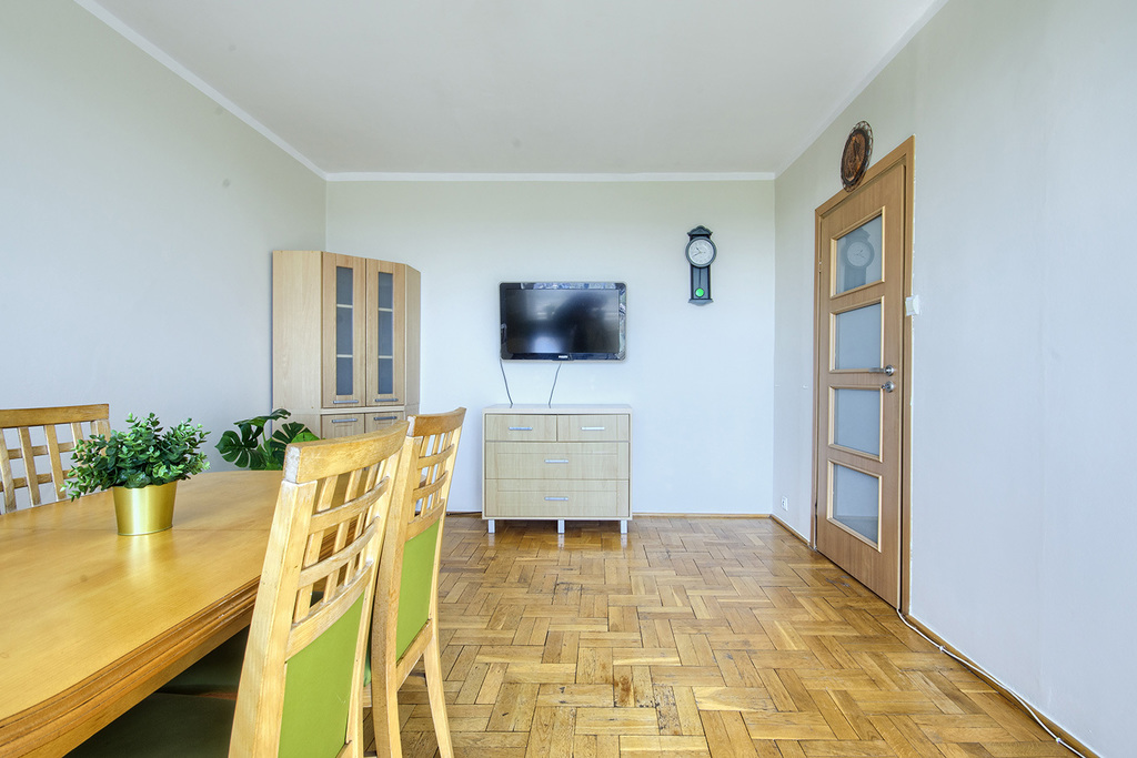 W pokojach znajduje się drewniany, dębowy parkiet. Mieszkanie jest odświeżone.