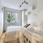 W obu sypialniach oraz w przedpokoju znajdują się wykonane na wymiar szafy w zabudowie dające dużo miejsca do przechowywania.