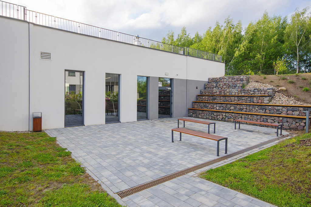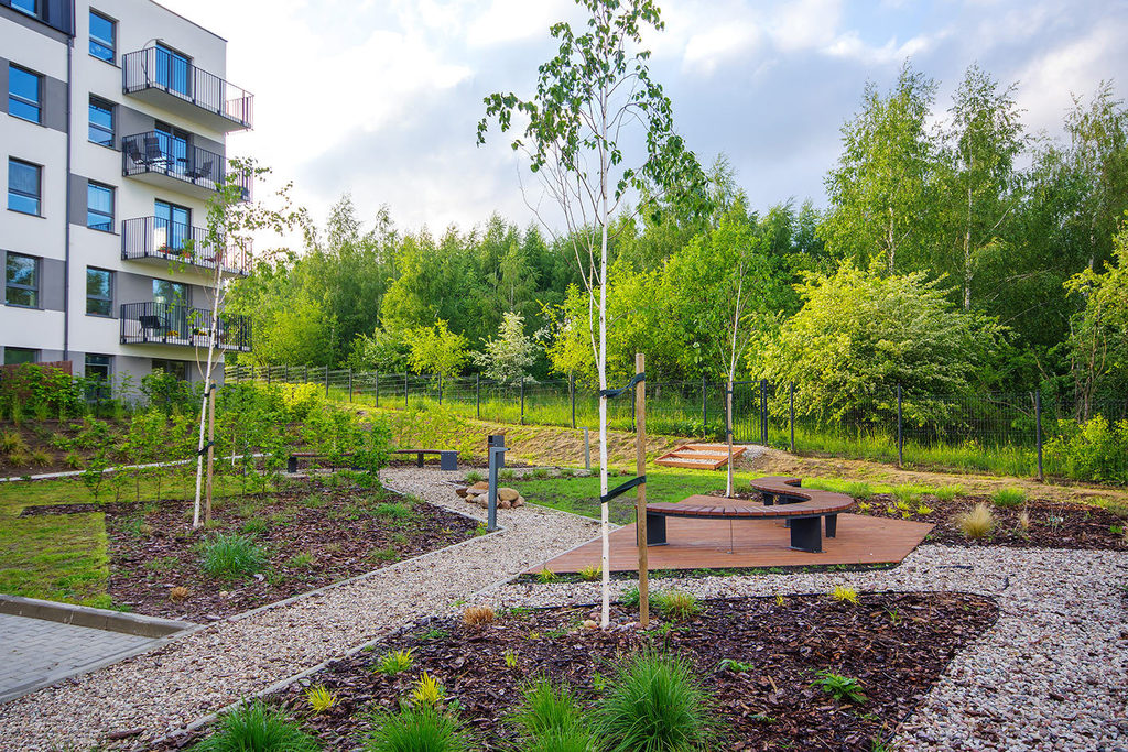 nowoczesne place zabaw oraz zadaszone miejsca postojowe dla rowerów.