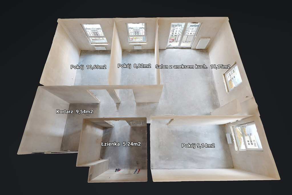 Nieruchomość o powierzchni 61,62 m2 składa się z: