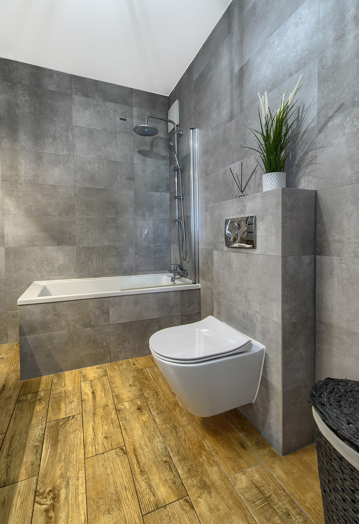- łazienki o powierzchni 4,9 m2 z wanną ze szklanym parawanem (2w1),