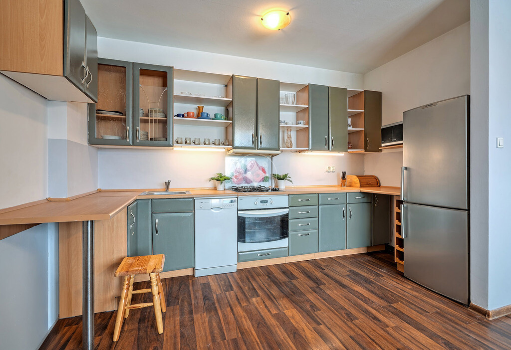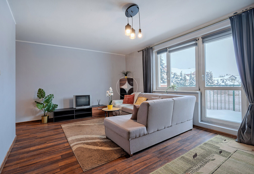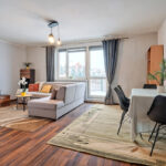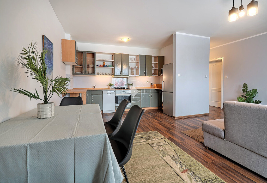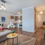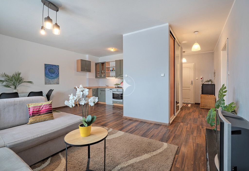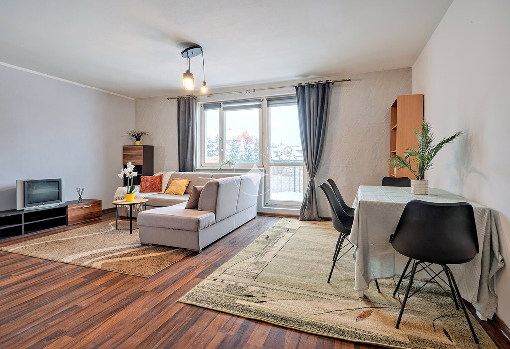 - przestronnego salonu z aneksem kuchennym (29,5 m2) z wyjściem na słoneczny balkon