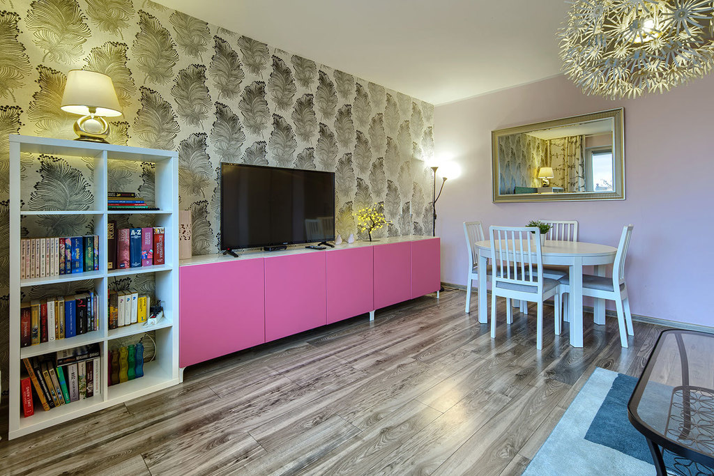 - salonu (22 m2) z wyjściem na duży słoneczny balkon