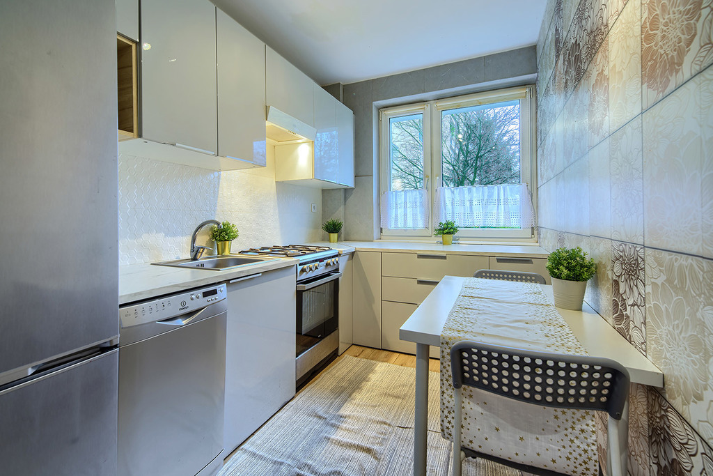 Atutem nieruchomości jest oddzielna, jasna, świeżo wyremontowana, w pełni wyposażona kuchnia.