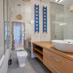 Łazienka przestronna wyposażona w wannę.