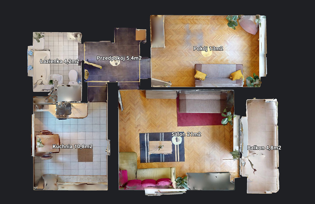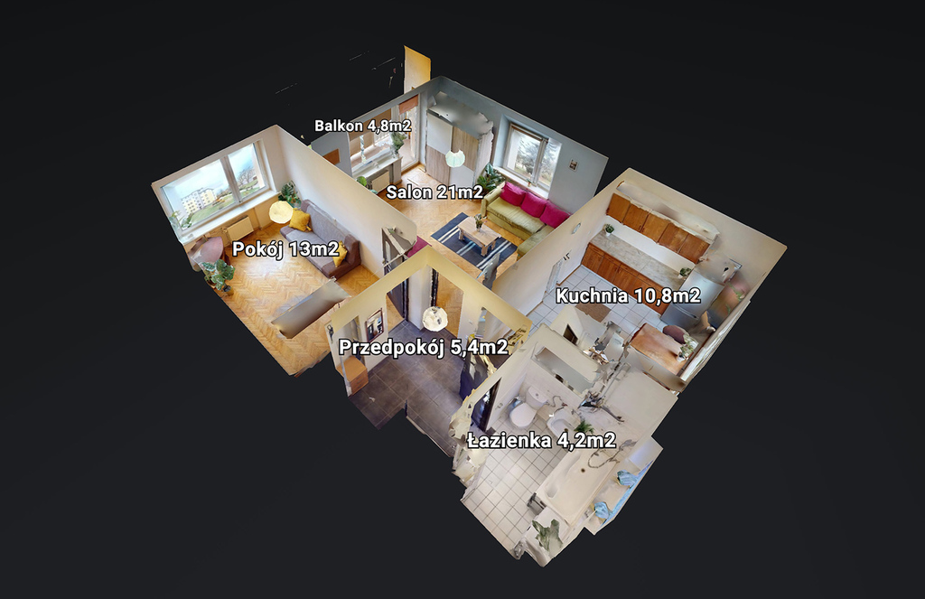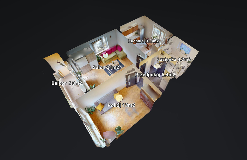 Nieruchomość o powierzchni 54 m2 składa się z:
