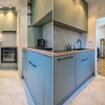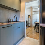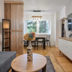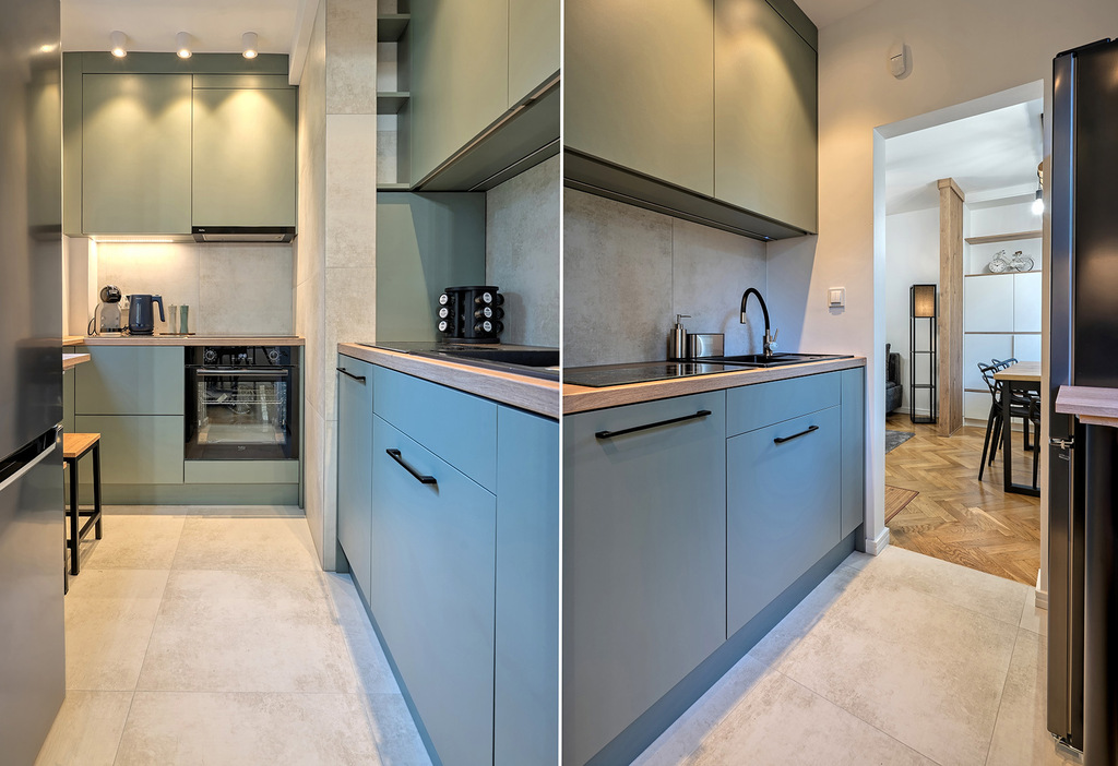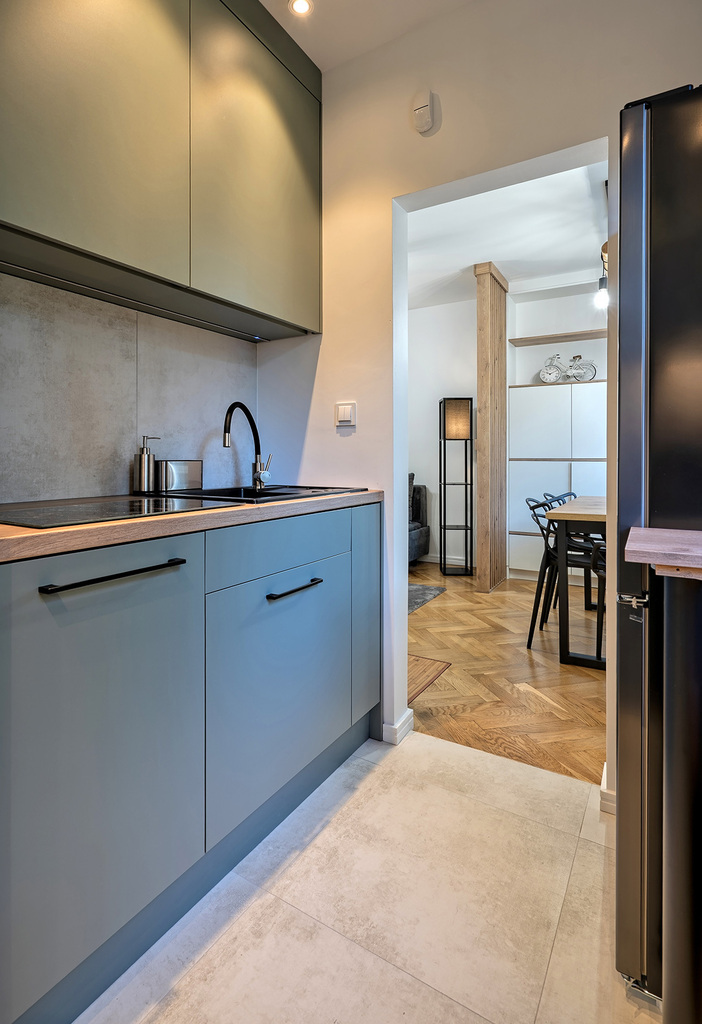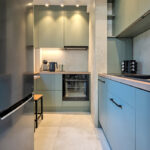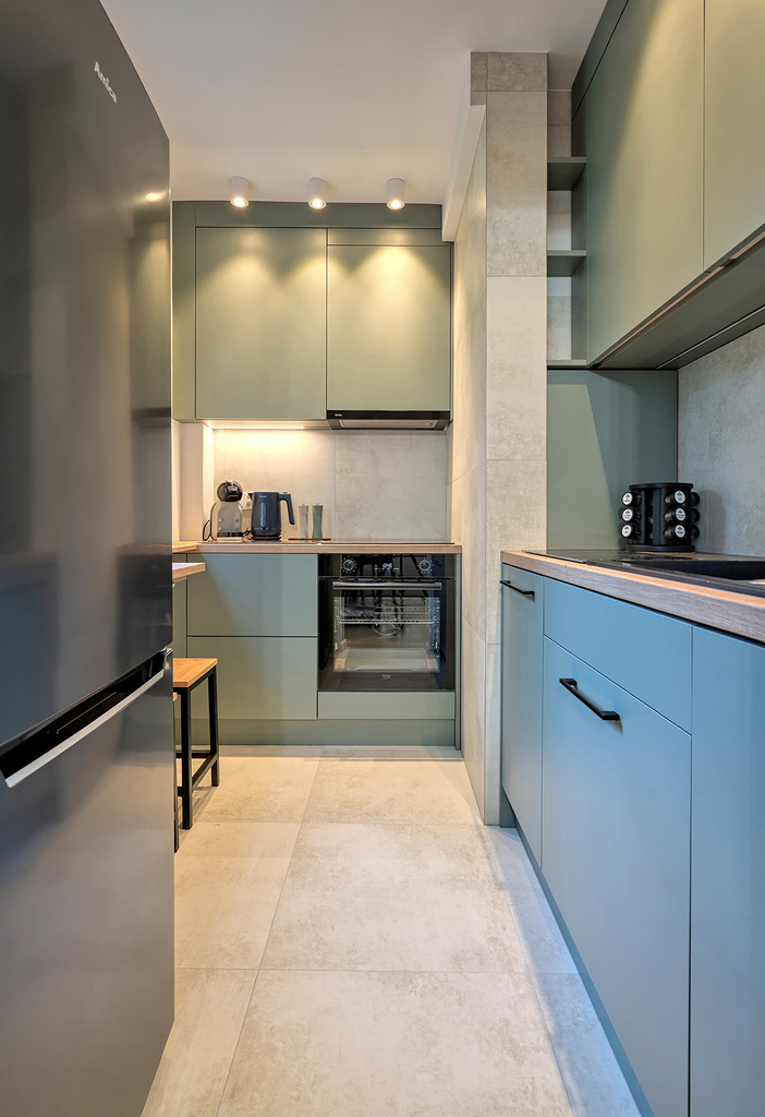 Kuchnia: oddzielna - Świetna kolorystyka; bardzo funkcjonalna z pełną zabudową oraz nowym sprzętem. Duża lodówka, zmywarka, płyta indukcyjna, piekarnik. Wyposażona w naczynia, sztućce, kubki, ekspres kapsułkowy, czajnik elektryczny.