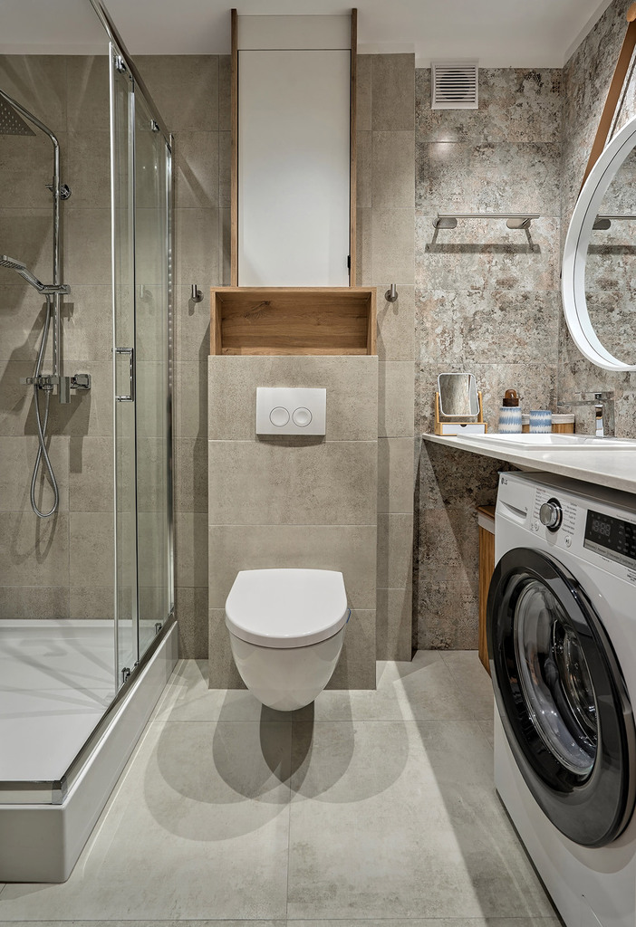 Łazienka: Gustownie urządzona. Duża kabina prysznicowa, pralka. Zawiera pełne nieosobiste wyposażenie.