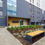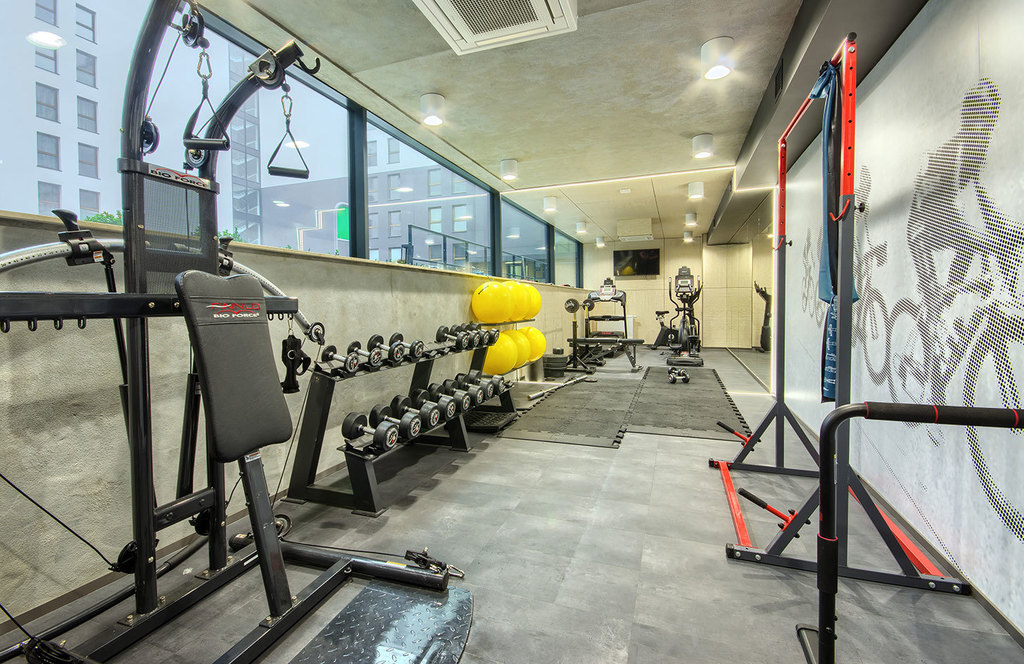 Nowoczesny apartamentowiec z 2022r z salą fitness, halą rowerową oraz siłownią zewnętrzną.