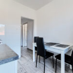 Kuchnia jest wyposażona w cały niezbędny sprzęt AGD: piekarnik, okap, lodówka z zamrażarką, pralka.