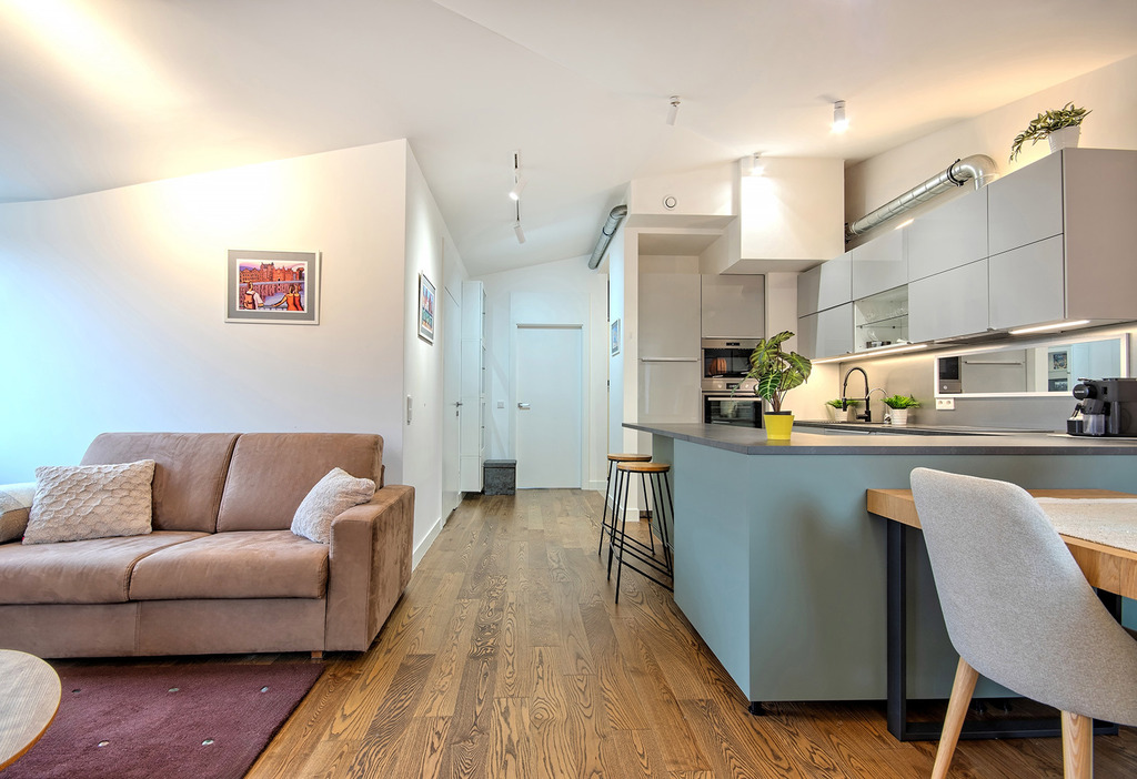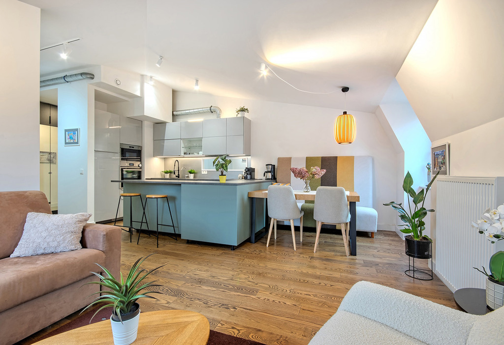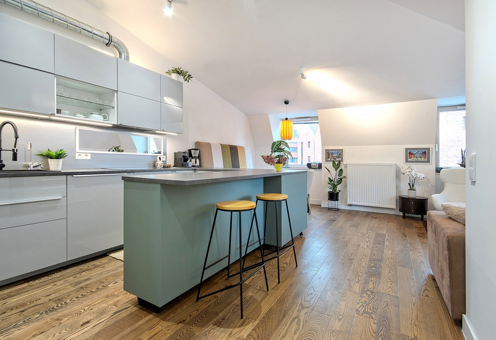 - przestronny salon z aneksem kuchennym