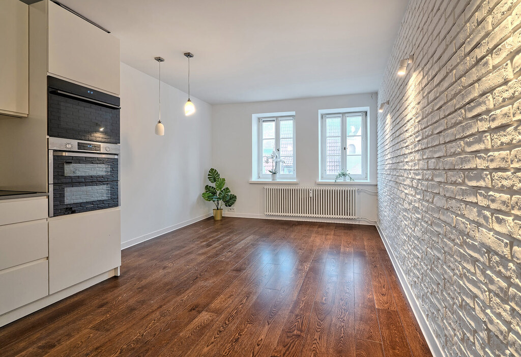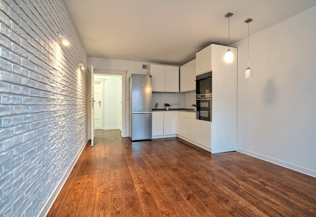 - przestronnego salonu z aneksem kuchennym (18,7 m2) z widokiem na ul. Garbary