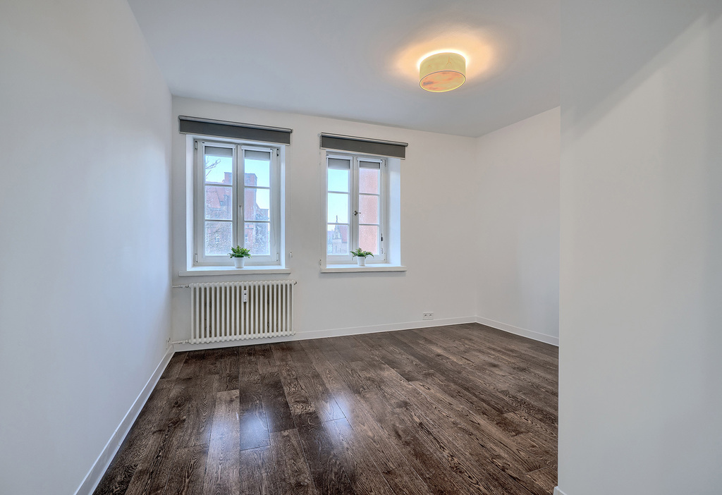 - sypialnia (11,9 m2) od strony dziedzińca z widokiem na historyczna Katownię