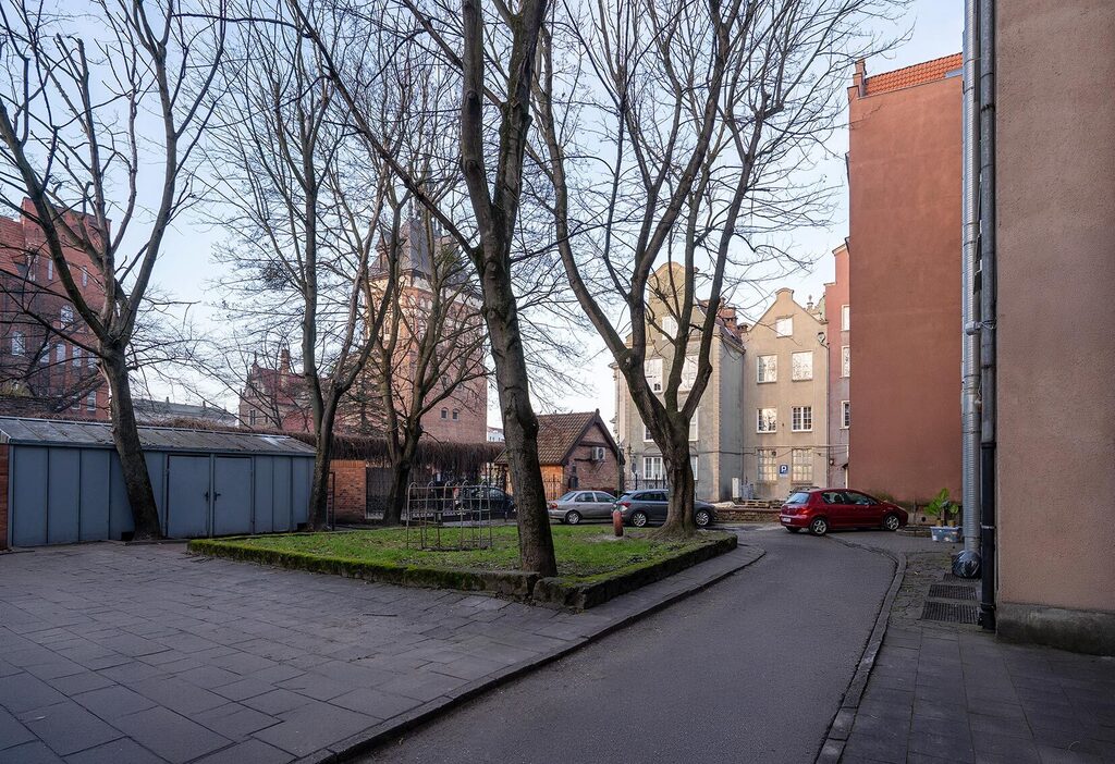 Dziedziniec wewnętrzny z dużą ilością miejsc parkingowych ogólnodostępnych