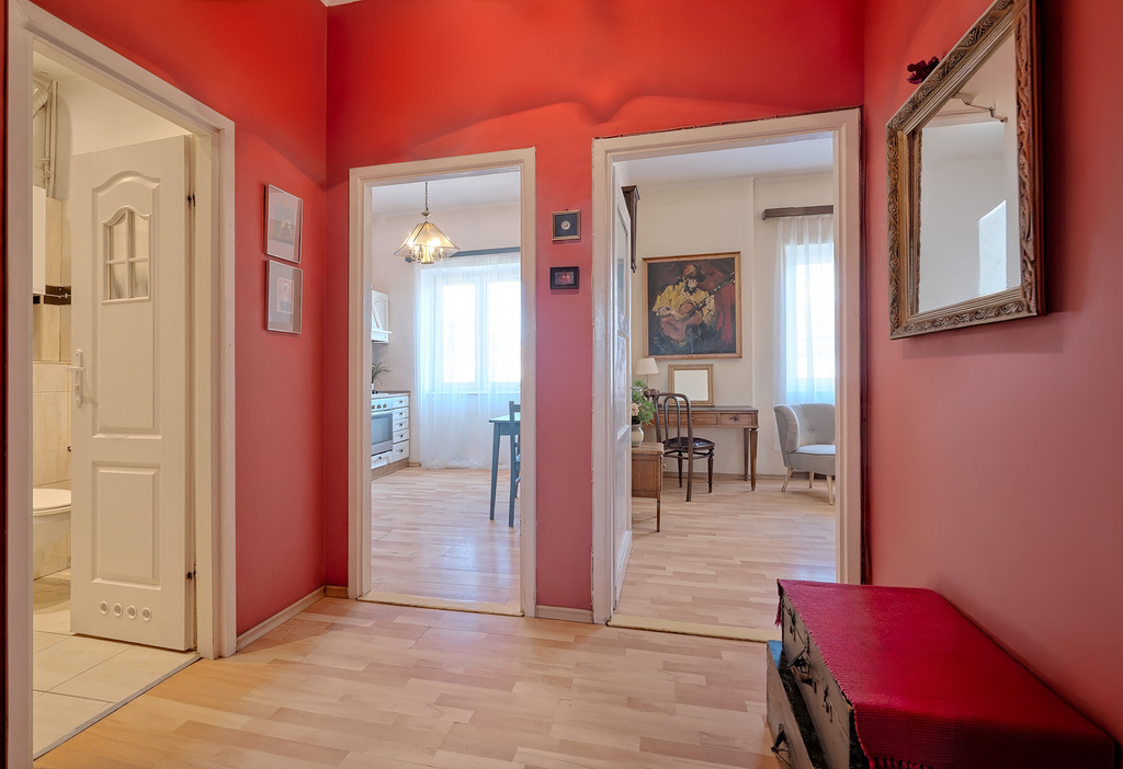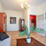 Wnętrze wypełniają piękne obrazy oraz stylowe, stare meble, które tworzą niezwykle klimatyczną przestrzeń inspirowaną historią miejsca. W mieszkaniu zachowały się autentyczne drzwi wewnętrzne, które podkreślają jego historyczny charakter i nadają wnętrzu wyjątkowej atmosfery.