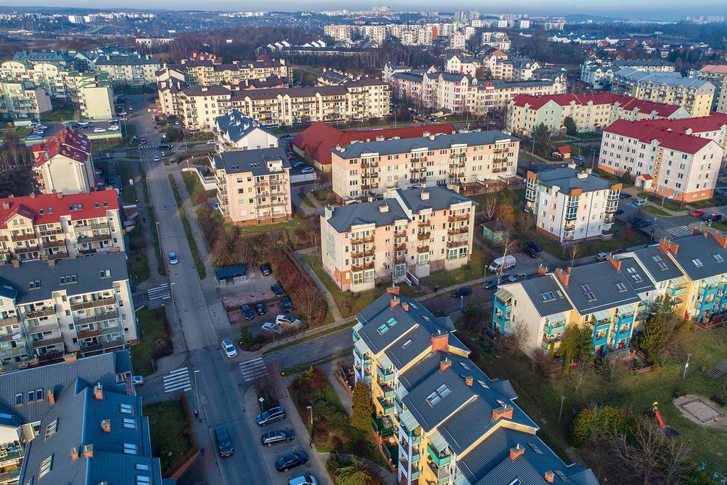 Sporo zieleni - tereny rekreacyjne, duży plac zabaw. Dzielnica jest bardzo dobrze skomunikowana - Przystanki autobusowe, w pobliżu linia tramwajowa, dobry dojazd do centrum i do obwodnicy.