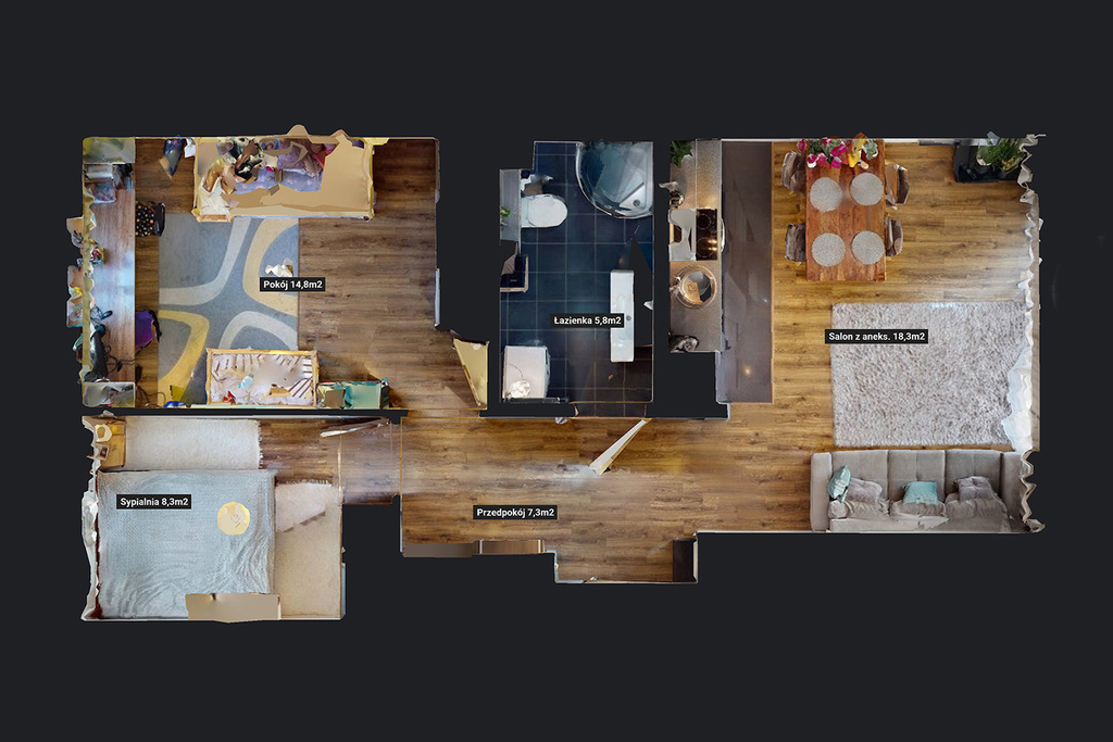 Przedstawione wizualizacje i grafiki mają charakter wyłącznie poglądowy i stanowią wyłącznie materiał pomocniczy, ułatwiający zorientowanie się w ogólnym wyglądzie oferowanej nieruchomości.